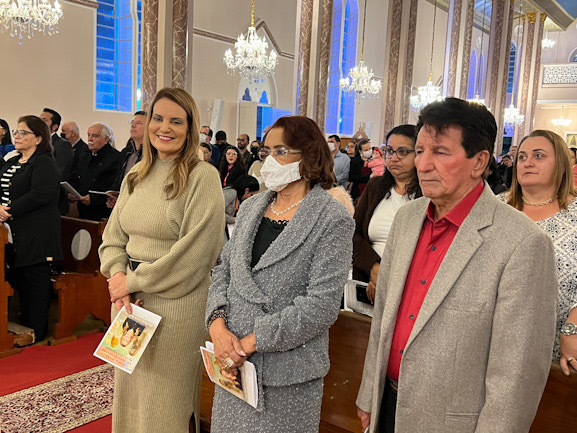 A Catedral Nossa Senhora das Vitórias recebeu, na noite de hoje (quarta-feira) a missa em ação de graças pelo aniversário da Prefeita de Vitória da Conquista, Sheila Lemos. A gestora acompanhou a celebração ao lado de sua mãe, Irma Lemos, o pai, José Andrade, e sua irmã, Karine Andrade. A missa foi presidida pelo Padre Valdo, pároco da Catedral. A missa teve a presença de familiares, amigos, vereadores e membros do Governo Municipal. O presidente da Câmara, Luis Carlos Dudé, tambem esteve presente com a familia. Durante todo o dia de hoje a prefeita Sheila Lemos recebeu felicitações e palavras de fé para que continue administrando o executivo municipal.