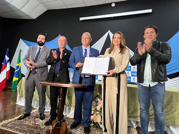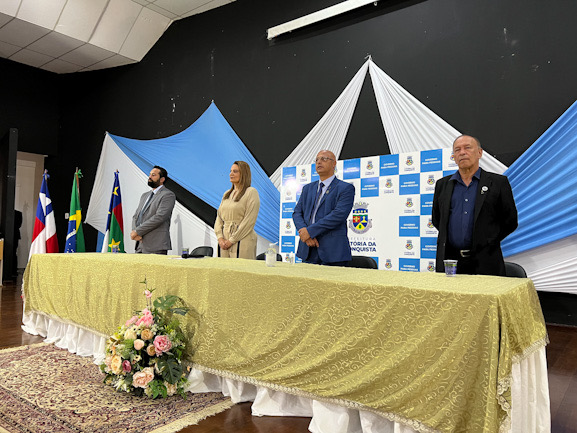 Em solenidade no Cemae na tarde de hoje (sexta-feira) o presidente da Câmara de Vereadores, Luís Carlos Dudé, foi empossado prefeito de Conquista para os próximos 11 dias. Isso aconteceu em virtude da prefeita Sheila Lemos sair de férias. Como a cidade não tem vice, quem assume é o comandante do legislativo municipal. A prefeita Sheila falou da alegria em ver o amigo Dudé assumir esse posto e não escondeu a emoção, ela estava acompanhada de sua mãe, a ex-vice-prefeita, Irma Lemos. Dudé, natural do Bairro Alegria, disse que encara o desafio com muita responsabilidade. “Um governo com muitas obras realizadas e que começaram a acontecer também, muitas ordens de serviço e nós vamos tocar o barco, com agendas na zona rural e zona urbana”, disse.