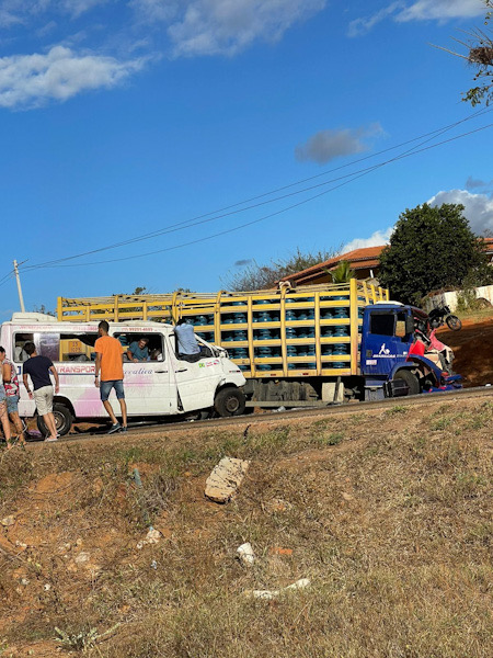 Na tarde desta segunda-feira (18), a Policia Militar foi informada a respeito de um acidente de transito na BR/030,no kM 061 no trevo de Lagoa Real envolvendo um caminhão marca M.BENZ/ ATRON 2324, placa policial PJK-3907 e o outro veículo um M.BENZ / SPRINTER , placa KMY-1292.