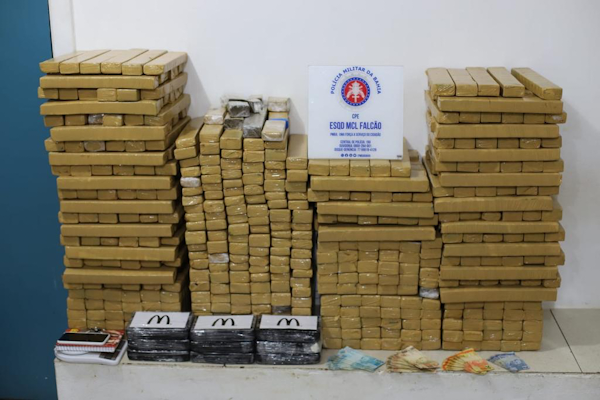 Uma guarnição do Esquadrão Falcão Tatico e ostensivo, na noite desta segunda-feira(18), avistou nas imediações do bairro Brasil um indivíduo em atitude suspeita;o mesmo foi abordado,e após ser indagado sobre a droga que estava em sua posse, levou a guarnição até seu condomínio onde foi localizado em um veículo 500 barras de maconha,ja no apartamento .Foi permitida a entrada dos militares e após buscas os policiais encontraram mais 9 tabletes de uma substância análoga à cocaína , uma balança de precisão.A droga avaliada em quase meio milhão de reais.