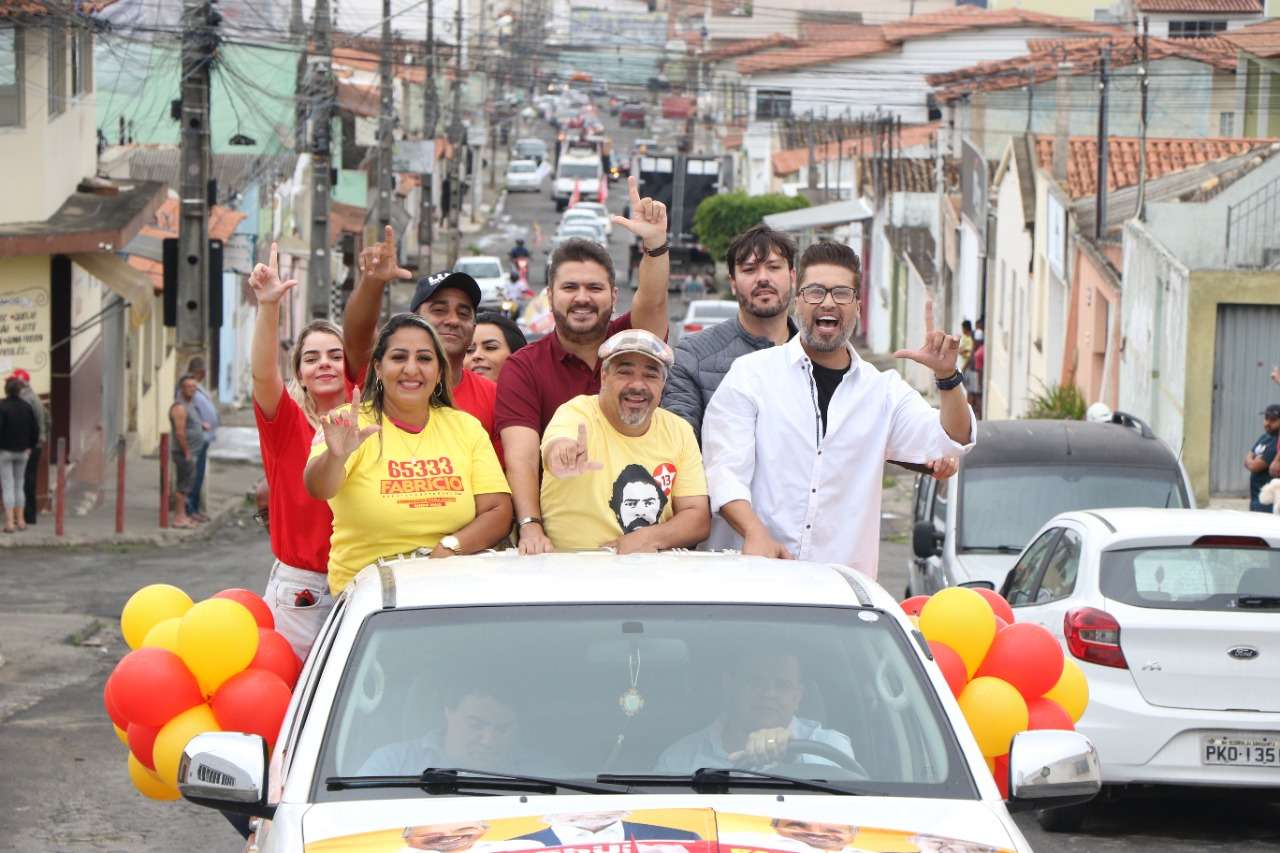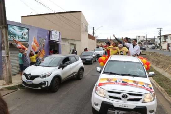 O deputado estadual Fabrício Falcão (PCdoB) realizou na manhã deste sábado (24) uma grande carreata em Vitória da Conquista. A mobilização, que que teve início na Avenida Olívia Flores, percorreu ruas de diversos bairros da cidade como Alto Maron, Guarani, Brasil, Ibirapuera, Vilas Serranas e Patagônia. Esteve ao lado do deputado, que concorre à reeleição, o deputado estadual e candidato a deputado federal, Diego Coronel (PSD), os vereadores Andreson Ribeiro e Ricardo Babão, ambos do PCdoB, e lideranças como Nildma Ribeiro, ex-vereadora, Adão Albuquerque, suplente de vereador, e Junior Figueredo.