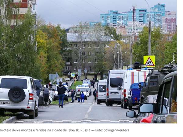 Um atirador abriu fogo em uma escola no centro da Rússia nesta segunda-feira (26). Treze pessoas morreram, a maioria delas crianças, e outras 20 ficaram feridas, segundo a polícia.