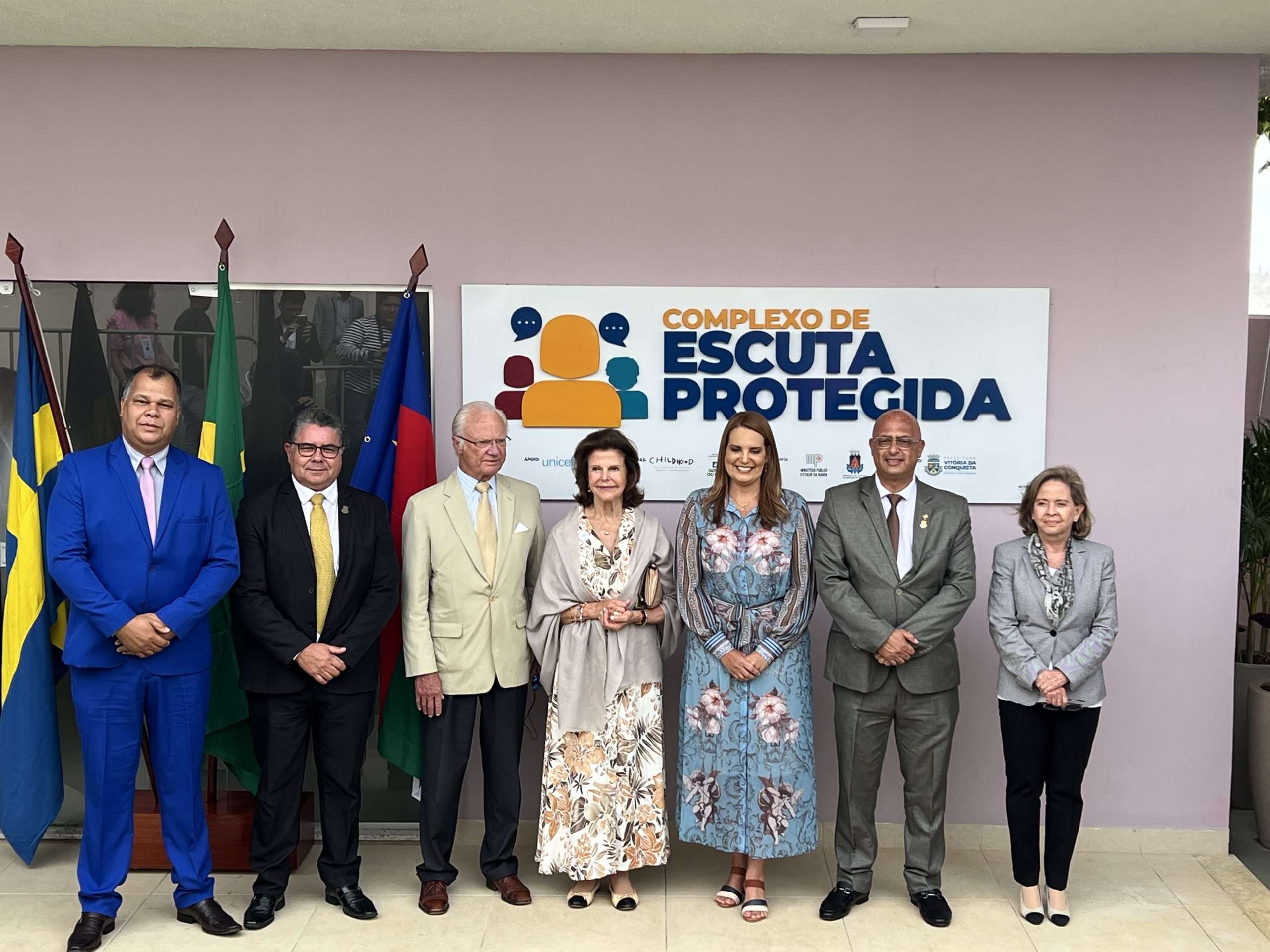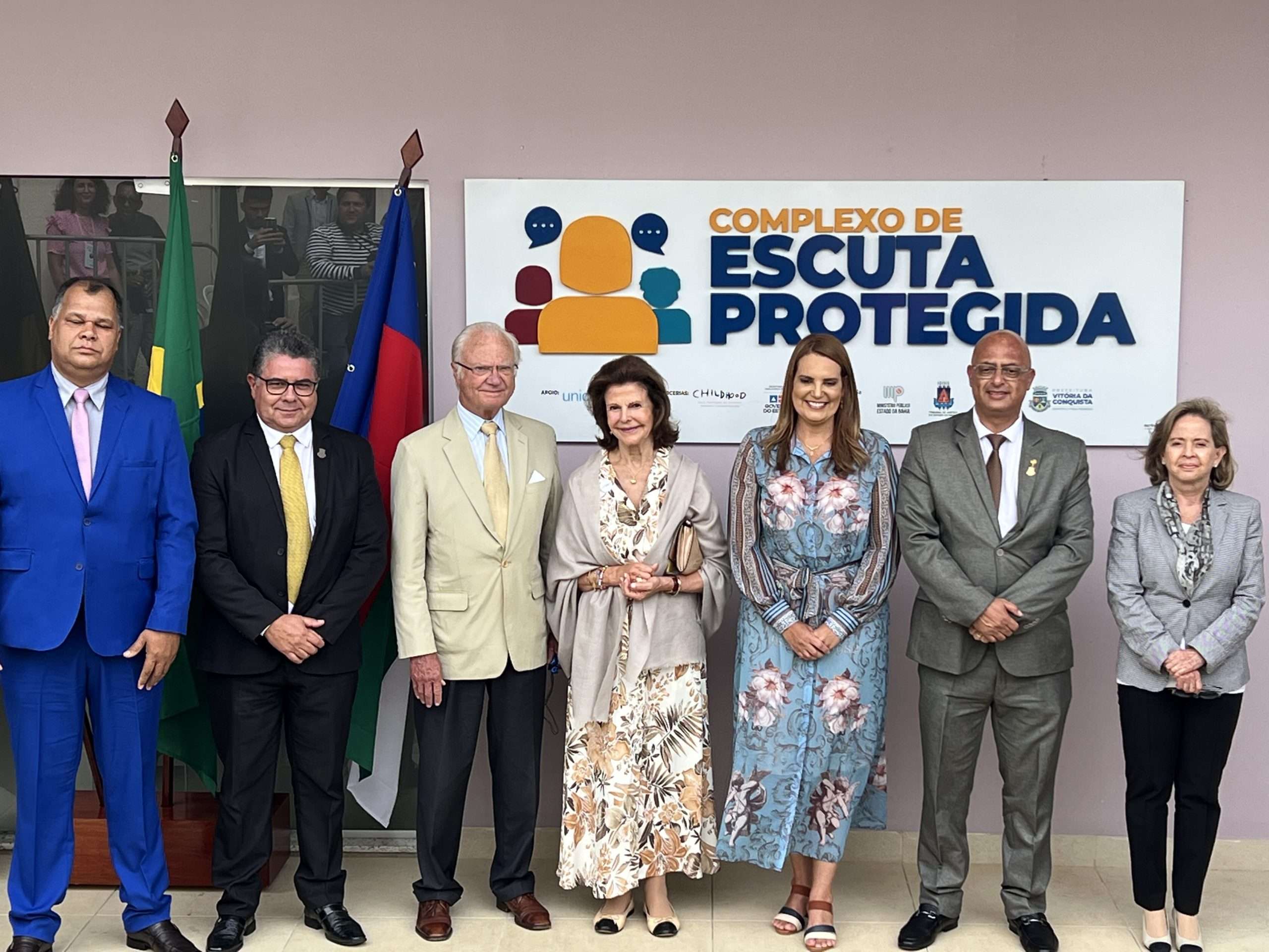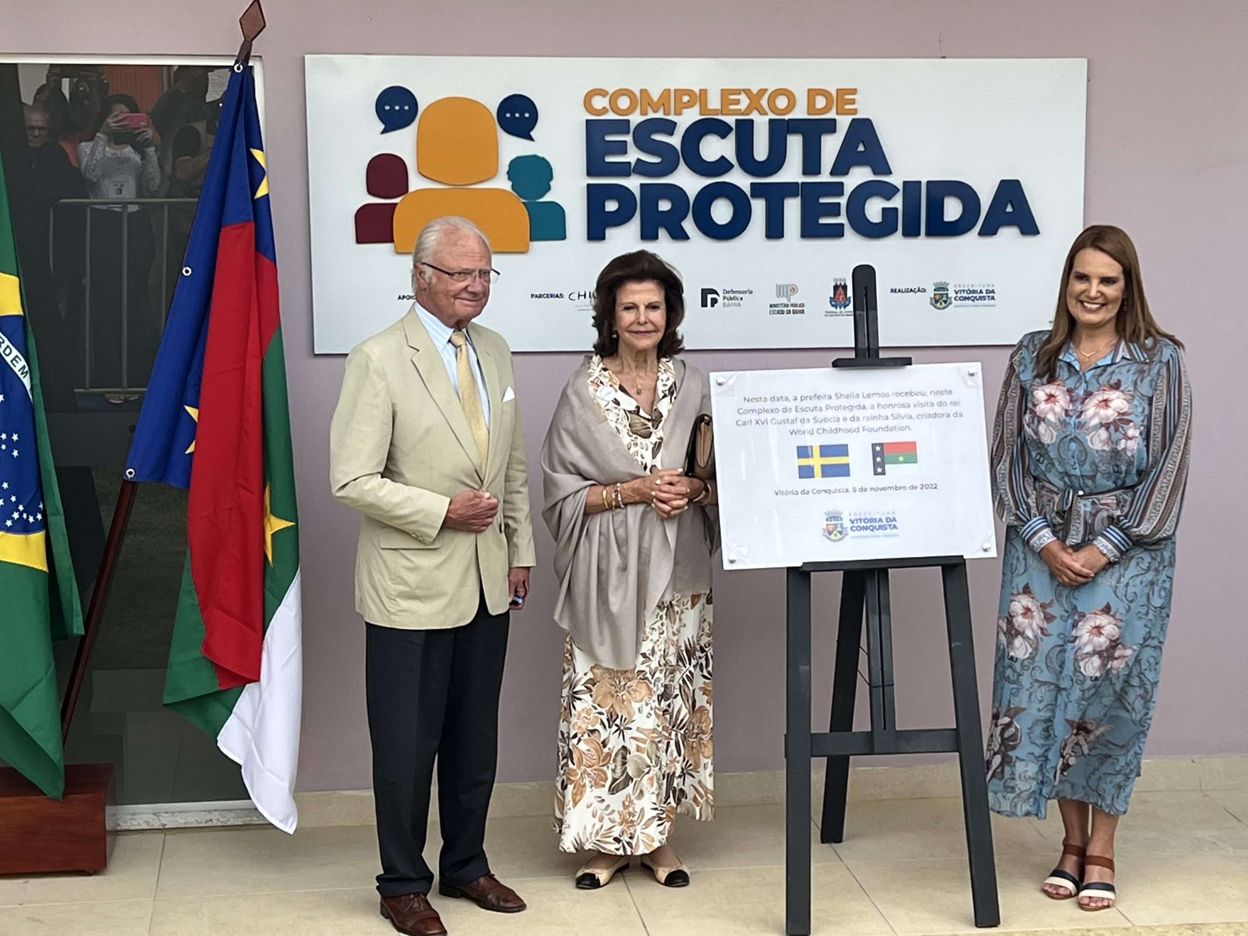 Desembarcou em Vitória da Conquista na manhã de hoje, terça-feira o rei Carl XVI Gustaf, com a sua esposa, a rainha Sílvia da Suécia, que visita a Suíça baiana para conhecer o Complexo de Escuta Protegida, equipamento implantado na cidade em parceria da Prefeitura com a Childhood Brasil, instituição criada pela rainha.