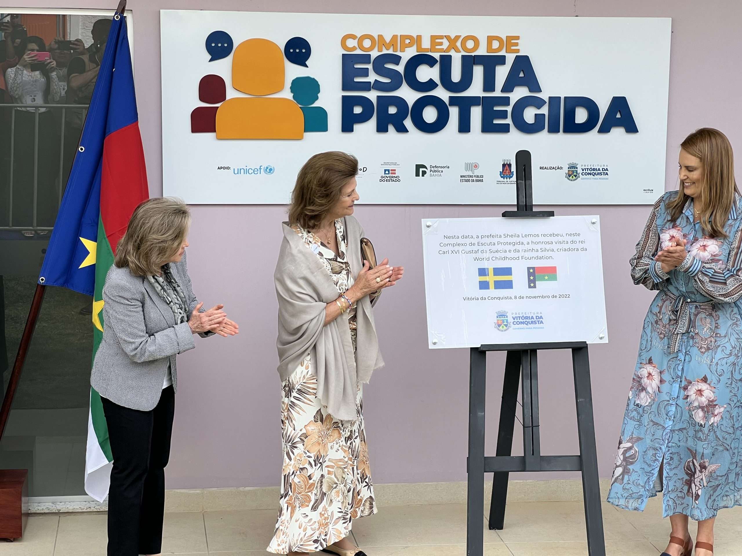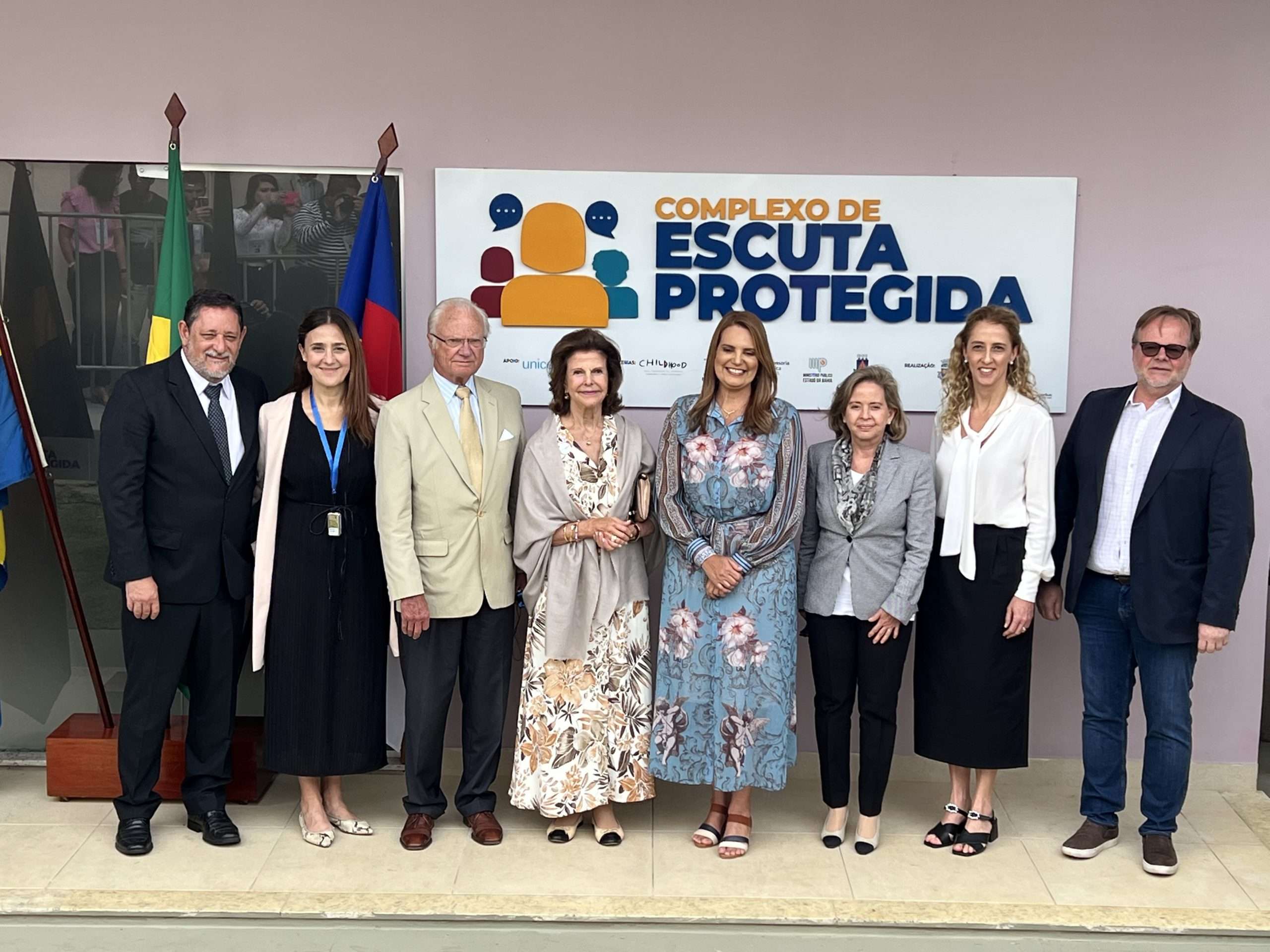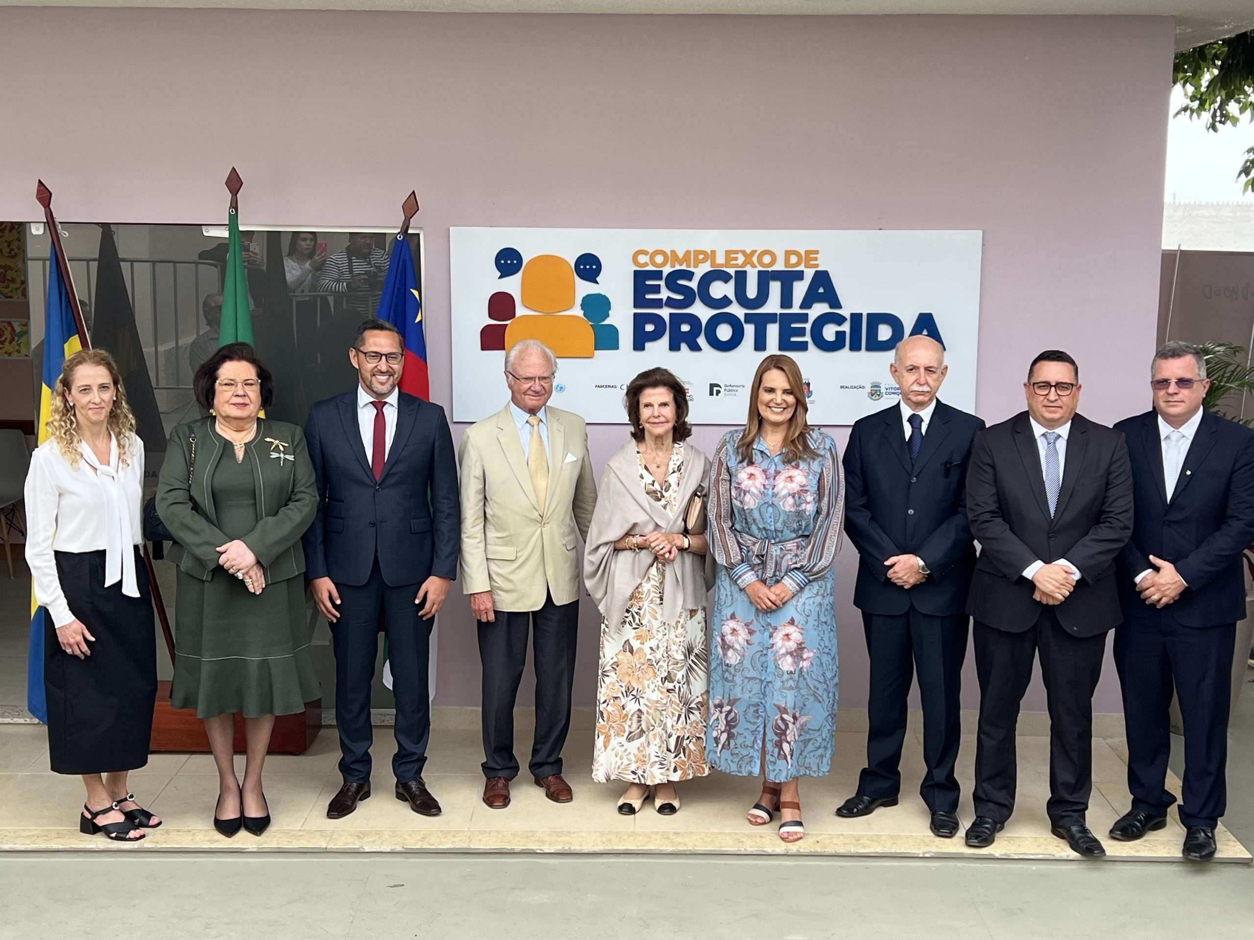 Desembarcou em Vitória da Conquista na manhã de hoje, terça-feira o rei Carl XVI Gustaf, com a sua esposa, a rainha Sílvia da Suécia, que visita a Suíça baiana para conhecer o Complexo de Escuta Protegida, equipamento implantado na cidade em parceria da Prefeitura com a Childhood Brasil, instituição criada pela rainha.