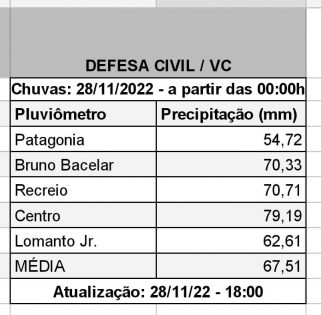 Até as 18h de ontem, as chuvas em Vitória da Conquista provocaram um volume pluviométrico com média de 67,51 milímetros. Na zona urbana, a área mais afetada foi a região central da cidade, onde a precipitação chegou a 79,19 milímetros.
