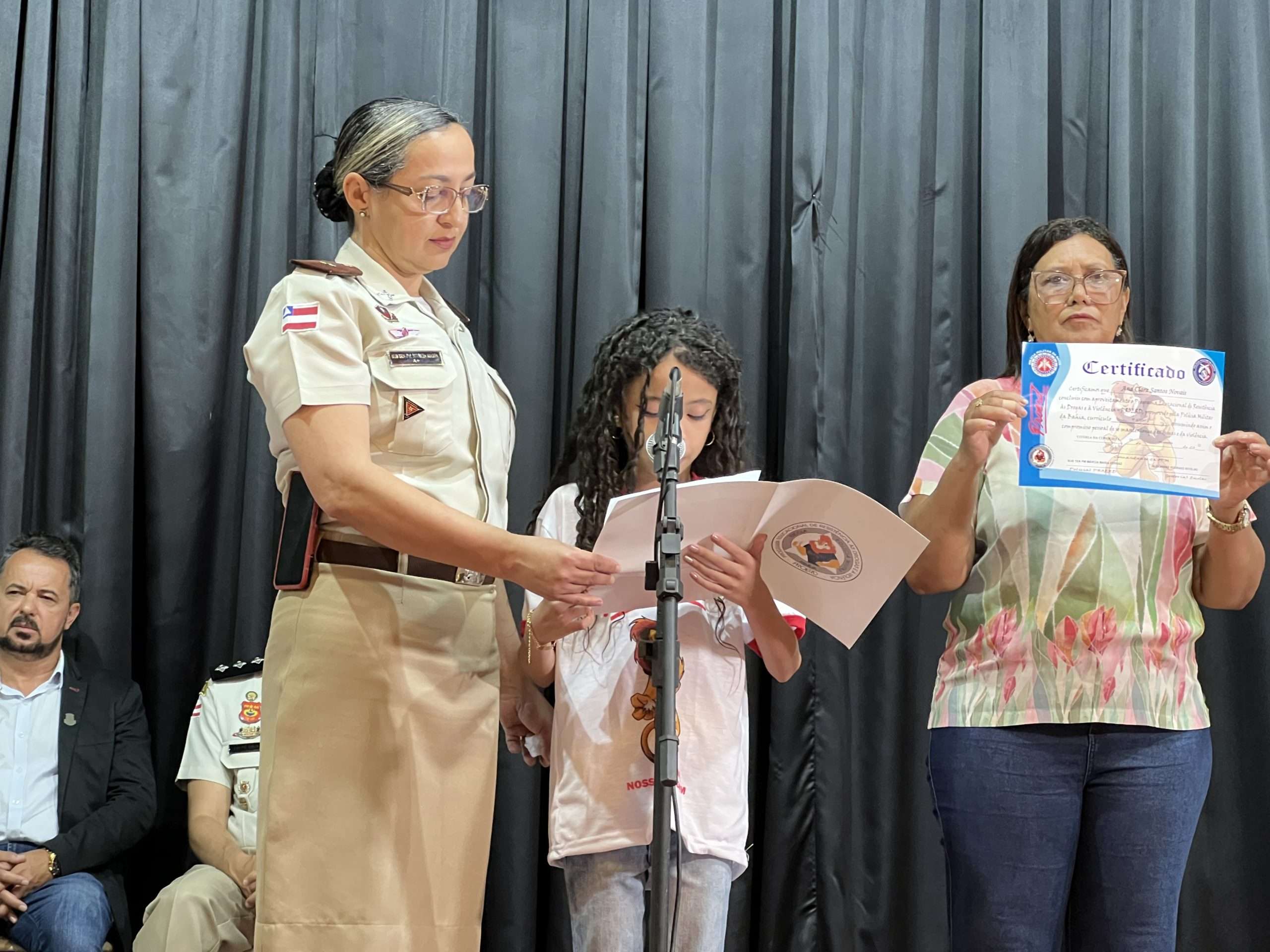 Ao final da formatura, os alunos proferiram o juramento e juntamente com os instrutores, cantaram a canção do PROERD, emocionando a todos os que estavam presente.
