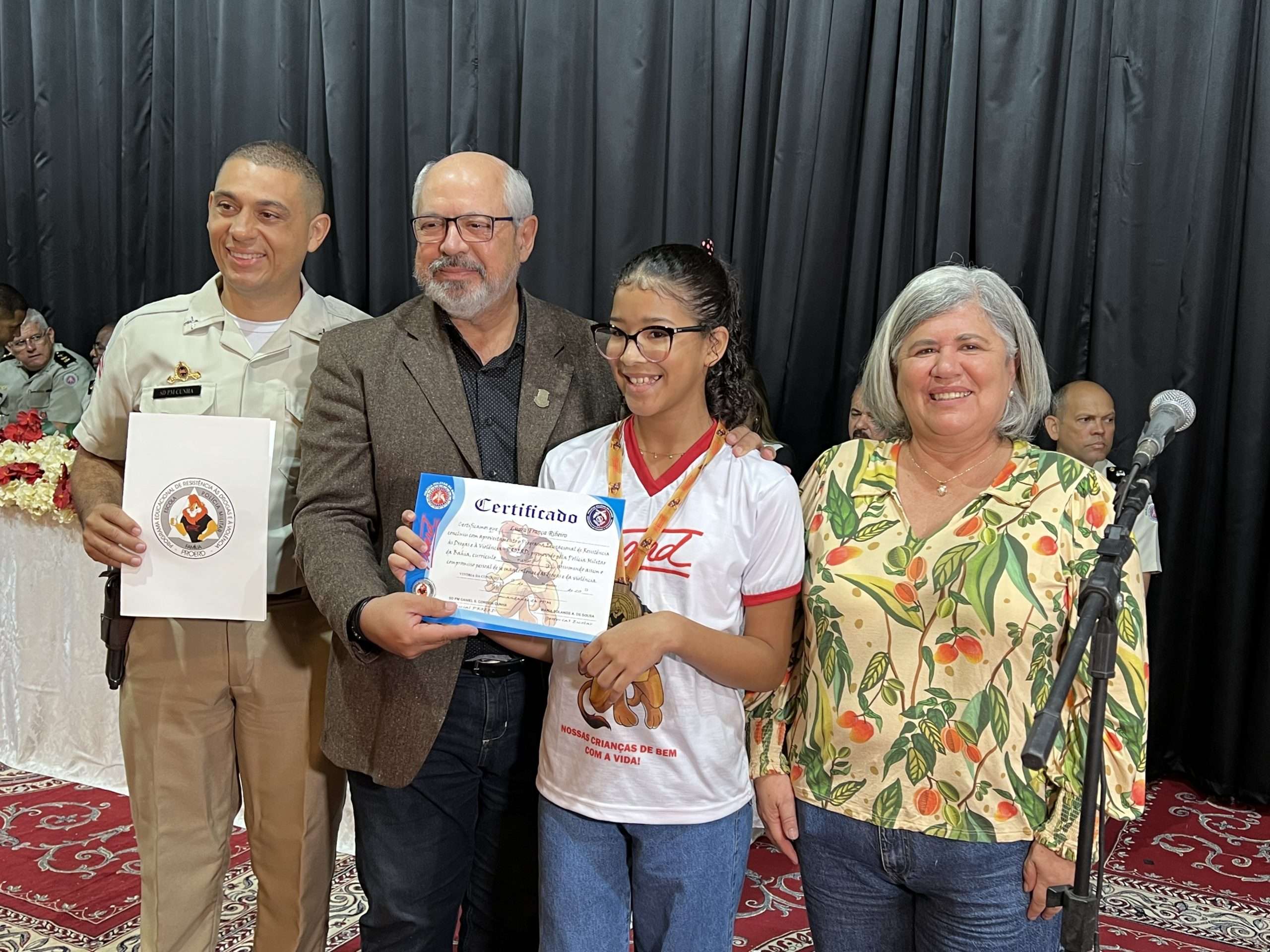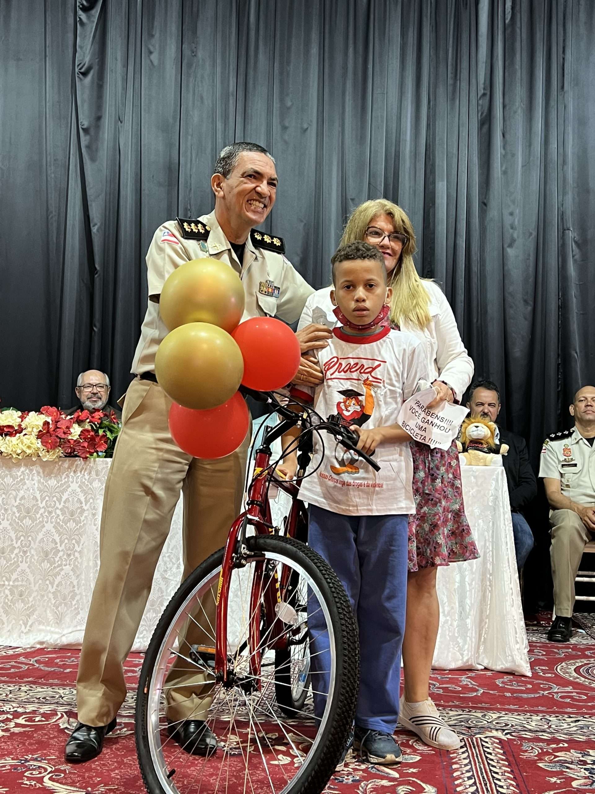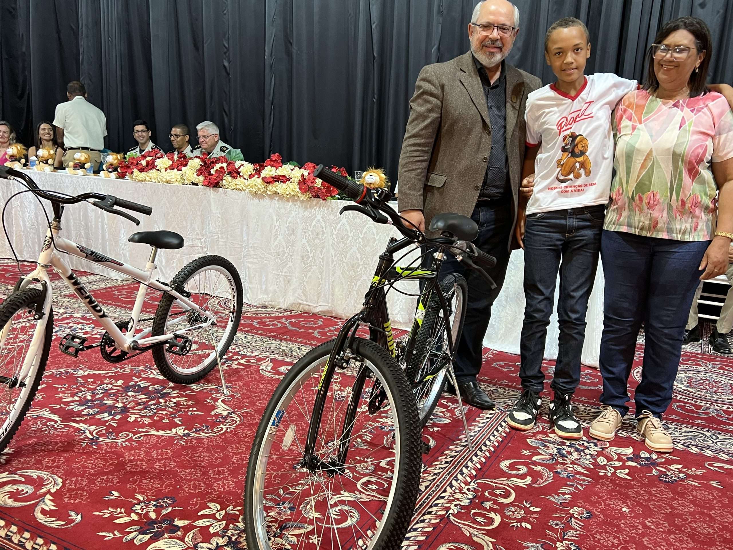 Os alunos que foram destaque nas redações receberam das autoridades as medalhas e os certificados de conclusão, sendo, também, premiados com a entrega de 12 bicicletas.
