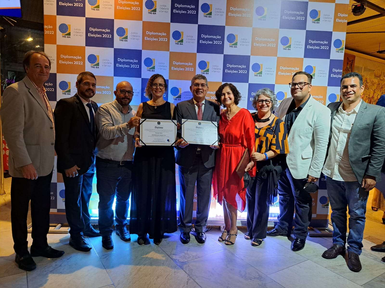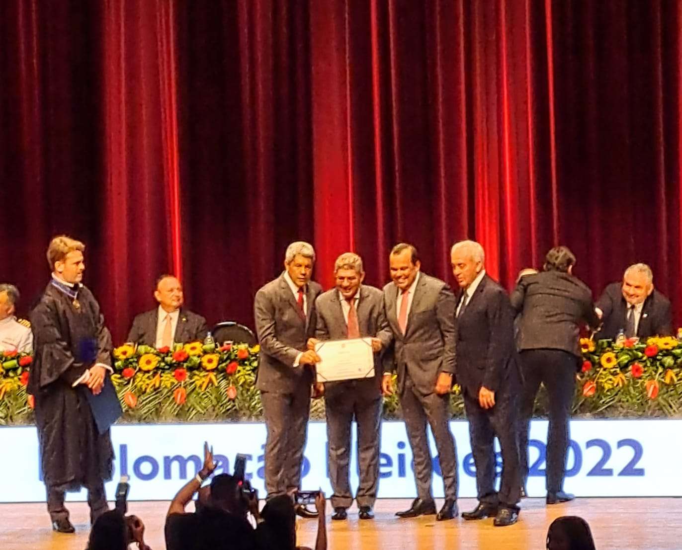 Zé Raimundo recebeu o diploma dele e também o do deputado Waldenor Pereira, que não pode comparecer à cerimônia por motivo de saúde e o nomeou procurador para representá-lo neste ato, presidido pelo desembargador Roberto Maynard Frank, presidente do Tribunal Regional Eleitoral da Bahia (TRE-BA).