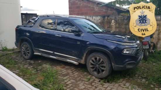Foram apreendidos os seguintes veículos: 01 (um) FIAT TORO, COR AZUL, PLACA com restrição de roubo no Rio de janeiro; 01 (um) RENAULT SANDERO, COR PRETO, com restrição de roubo em Salvador/BA; 01 (um) FIAT UNO FBA-0E45, com restrição de roubo de Itambé/BA e 01 (um) RENAULT KWID, roubado em Salvador.