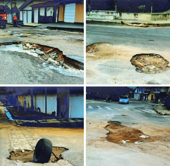 Em muitas ruas e avenidas é essa situação. O asfalto se soltando. Na Avenida Integração, Nas Avenidas Caetité, Amazonas e Paramirim são muitos buracos. Situação parecida também em uma das avenidas mais importantes da cidade, a Frei Benjamin.