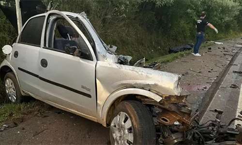 Infelizmente uma pessoa morreu. O acidente aconteceu no Sul do país e chamou a atenção de como o carro ficou após a colisão com um caminhão.
