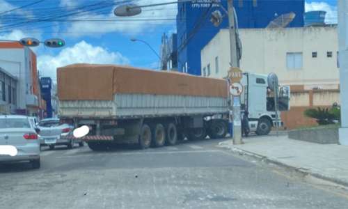 Um veículo de grande porte ficou atravessado envolvendo as duas artérias, deixando o trânsito lento na localidade no início da tarde de hoje, quinta-feira.