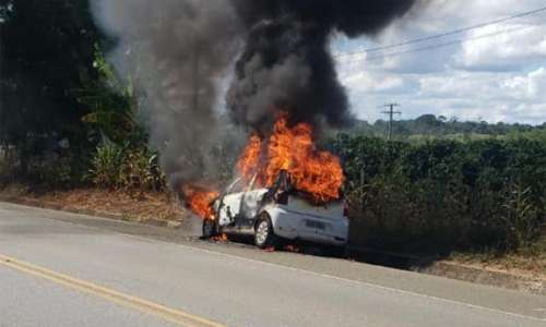 Um carro pegou fogo um pouco antes da Serra do Marçal.