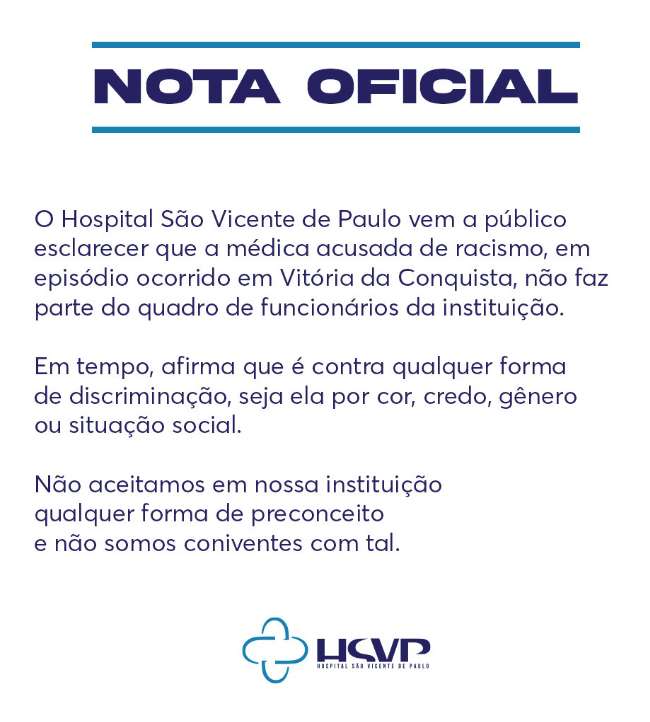 Em nota, o Hospital São Vicente informou que a referida médica não pertence ao quadro de funcionários da unidade.