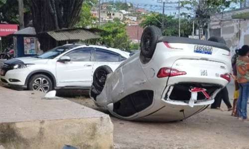 Um carro capotou e chamou a atenção de quem passava pelo local.