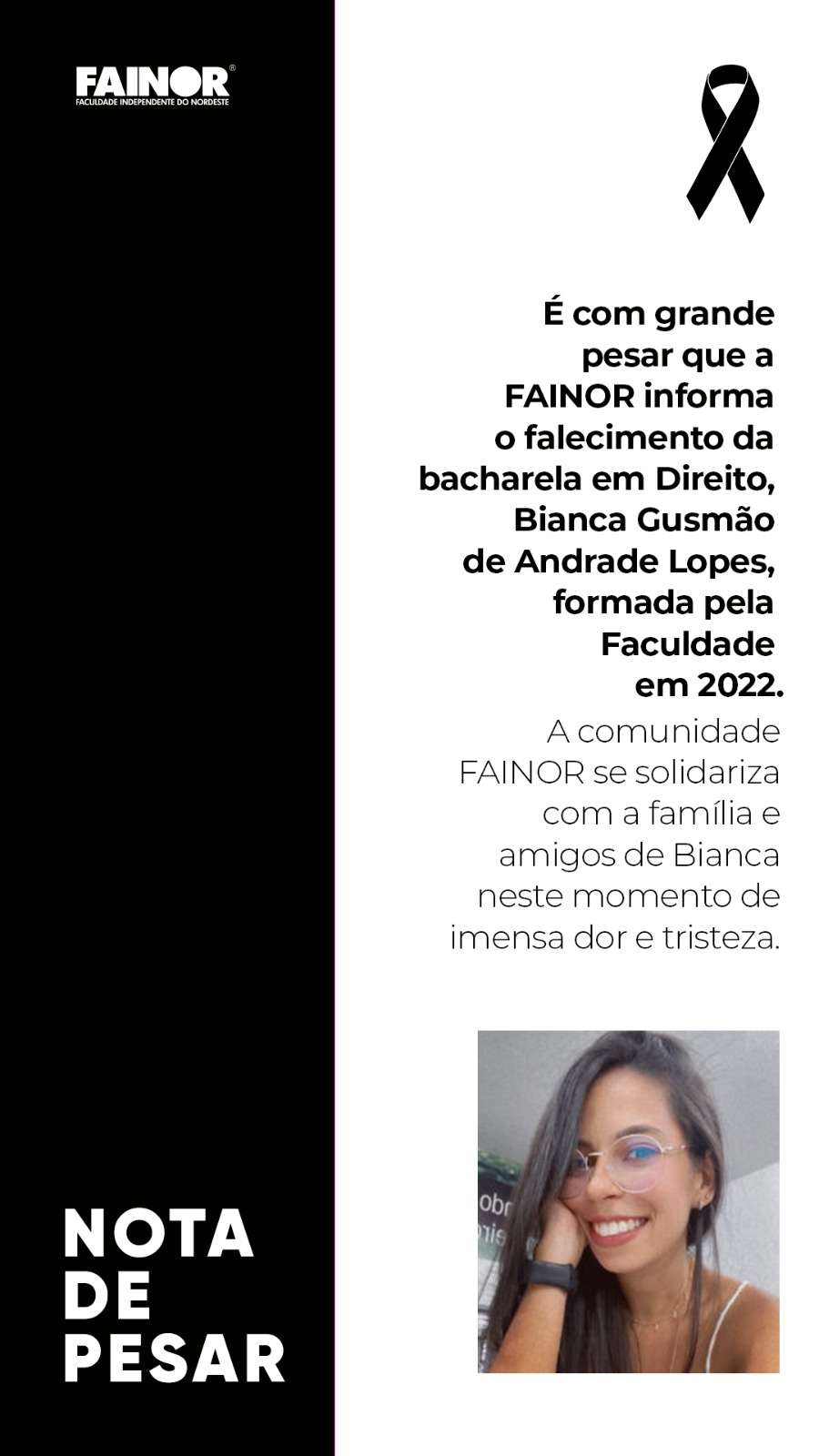 Com muito pesar informamos o falecimento de Bianca Gusmão, jovem bastante conhecida na terceira maior cidade da Bahia, onde fez muitos amigos.