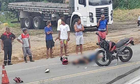 O motociclista acabou perdendo o controle e colidiu na traseira de uma carreta.