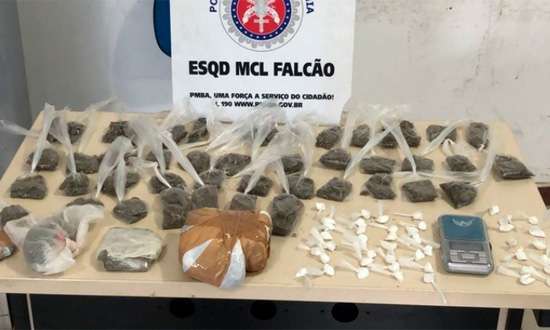 A apreensão foi de uma grande quantidade de drogas, incluindo 48 pedaços pequenos de maconha (10g cada), 4 pedaços médios de maconha (25g cada), 4 pedaços grandes de maconha (totalizando 400g), além de 45 trouxas de cocaína. Também foi encontrada uma balança de precisão, indicando a possível prática de venda e distribuição dessas substâncias.