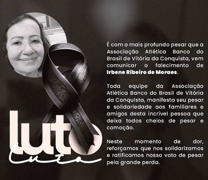 É com profundo pesar que recebemos a triste notícia do falecimento de Irbene Ribeiro de Morais. Neste momento de dor e consternação, expressamos nossos sentimentos de solidariedade e apoio à família, amigos e à comunidade da AABB de Vitória da Conquista.