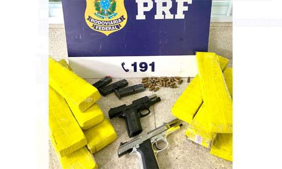 Uma pistola calibre .40 com numeração raspada, uma pistola calibre 9MM, três carregadores, 27 munições e 10kg de maconha foram apreendidos na manhã desse sábado (19) pela Polícia Rodoviária Federal, na BR 116, em Vitória da Conquista.