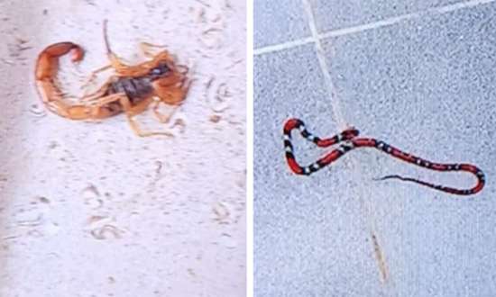 Moradores têm relatado o aparecimento de escorpiões nas casas. Até mesmo em meio às roupas, um grande perigo que é preciso ficar atento. Em outros bairros, como o bairro Brasil, são cobras que têm aparecido nas residências, principalmente nas que ficam próximas do muro do antigo aeroporto.