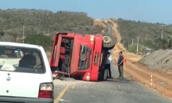 Na tarde desta segunda-feira (22), uma carreta que transitava na Rodovia Barra/Conquista acabou tombando.