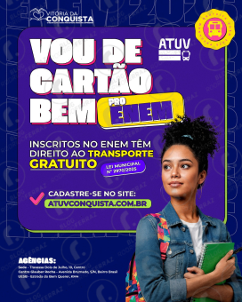 O cadastro deve ser feito até 7 de novembro, às 18h, no site atuvconquista.com.br ou presencialmente em uma das agências da Atuv. Para se inscrever, o estudante precisa apresentar foto do RG e CPF, comprovante de residência e comprovante de inscrição no Enem. Após a confirmação das informações, o crédito referente ao transporte será inserido no cartão Bem Escolar, permitindo o uso do benefício nos dois dias de aplicação das provas.