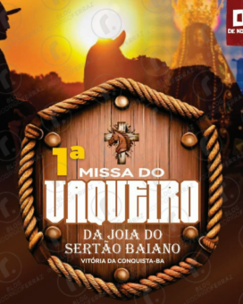 No próximo sábado (01), acontecerá a primeira edição da Missa do Vaqueiro da Joia do Sertão Baiano. O evento será em dois locais, com a programação iniciando às 9h no Cristo de Mário Cravo, com uma missa e homenagens aos vaqueiros. Posteriormente terá uma cavalgada até o Estádio Lomanto Júnior, e às 15h, no Parque de Exposições Teopompo de Almeida, terão shows de Rivelino Lima, Rony Barbosa, Netinho do Forró, e Edigar Mão Branca.