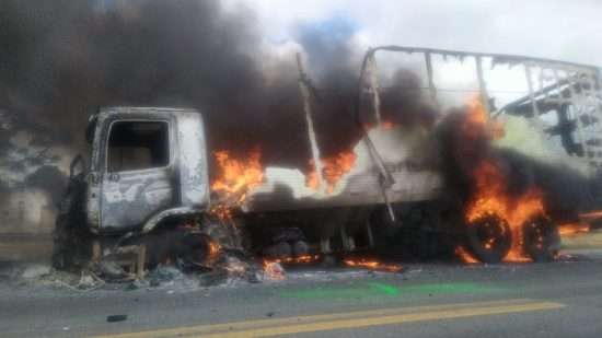 Um caminhão pegou fogo próximo ao município de Brejões, no Sudoeste baiano.