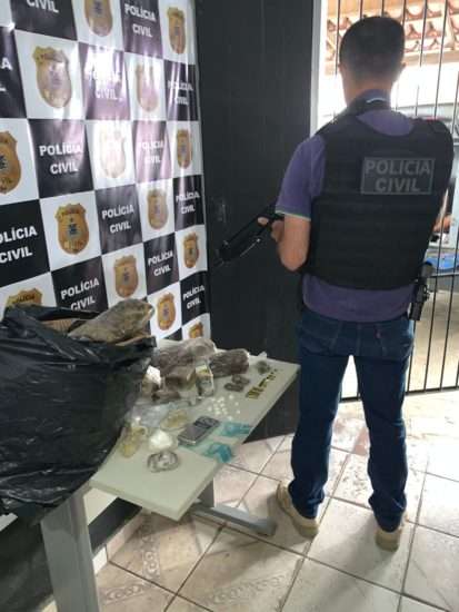 Os investigadores da Polícia Civil efetuaram buscas em imóveis dos acusados, sendo um na cidade e outro na zona rural do município, onde foram localizados e apreendidos vários tabletes grandes e porções de maconha, cocaína e crack , para comercialização, balança de precisão usada do tráfico, munições, além de dinheiro da atividade ilícita.