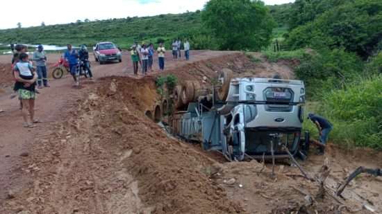 O veículo ficou atolado em um lamaçal na região do Bairro Panorama, na Zona Leste da cidade.