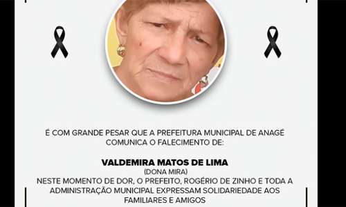 É com grande pesar que a Prefeitura Municipal de Anagé comunica o falecimento de: