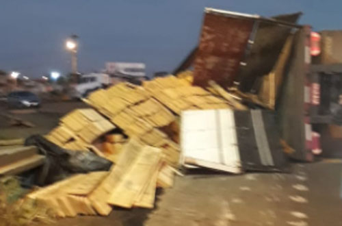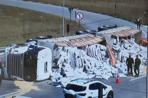 Um caminhão carregado de ração tombou, no final da manhã desta quarta-feira (07), na BR-116, próximo ao bairro Lagoa das...