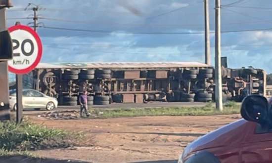 Uma carreta tombou no anel rodoviário de Vitória da Conquista, nas proximidades do Assaí, na tarde de hoje. Apesar do...