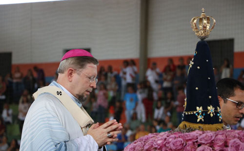 Há 8 anosConquista: Missa no ginásio de esportes encerra Peregrinação da imagem de Nossa Senhora Aparecida; veja fotos