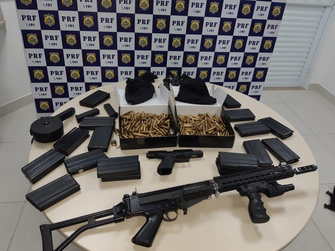 PRF de Conquista encontra armamento pesado e drogas em ônibus interestadual