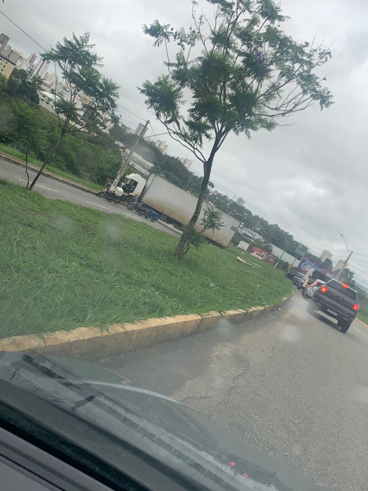 Um caminhão está atravessado em um dos trechos da Avenida Luís Eduardo Magalhães, em Vitória da Conquista, na tarde de...