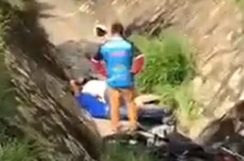 Um casal que estava trafegando de moto na Avenida Luís Eduardo Magalhães, em Vitória da Conquista, acabou caindo na valeta...