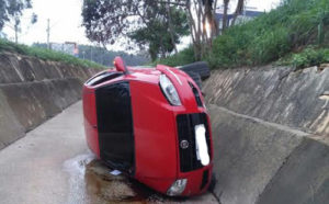 Conquista: Carro cai em valeta na Avenida Luís Eduardo Magalhães
