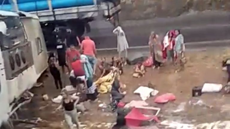 Há 6 anosÔnibus com romeiros da Bahia e carreta se envolvem em acidente na BR-040, na Região Central de Minas