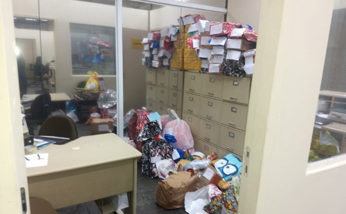 Pelo menos oito grandes volumes contendo cestas básicas e presentes de Natal destinados a crianças carentes que enviaram cartas ao...