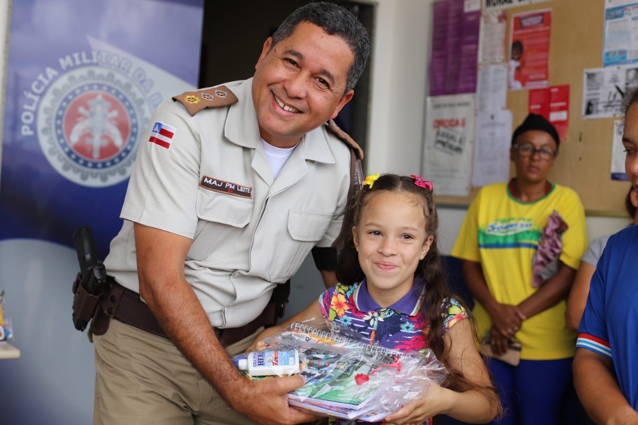 Há 6 anosResponsabilidade social! Policiais da Base Comunitária de Segurança distribuem material escolar para crianças carentes de Conquista