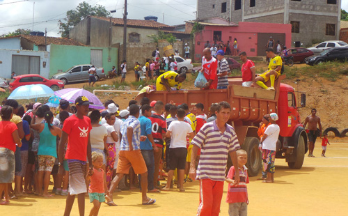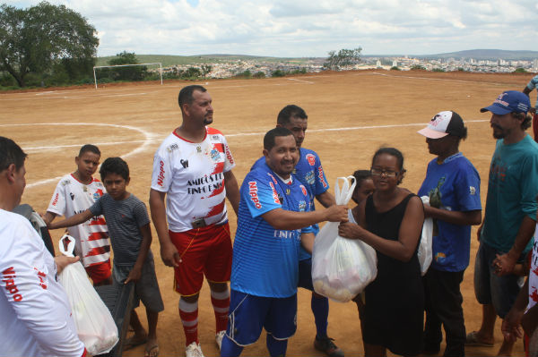 Há 7 anosConquista: Em jogo de futebol beneficente, famílias recebem mais de 180 cestas básicas no Aparecida; veja as fotos