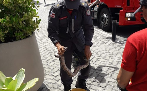 Equipes do 10° Grupamento de Bombeiros Militar (10°GBM), de Camaçari, foram acionados para resgatar uma jiboia num shopping da cidade....