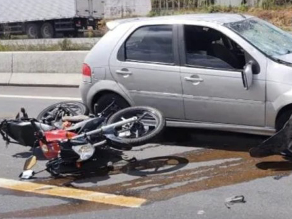 Um motociclista morreu após colisão da moto que conduzia com um carro de passeio na Rodovia Santos Dumont BR-116, no...