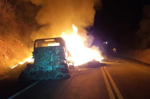 Uma carreta pegou fogo enquanto transitava na noite desta quarta-feira (16), na altura do KM 649, trecho conhecido como Reta...