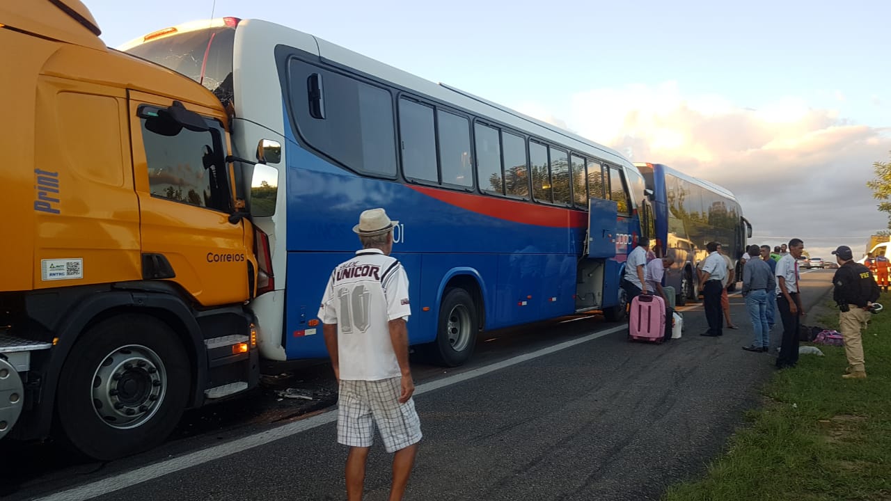 Há 6 anosConquista: Acidente envolve dois ônibus e dois caminhões na BR-116