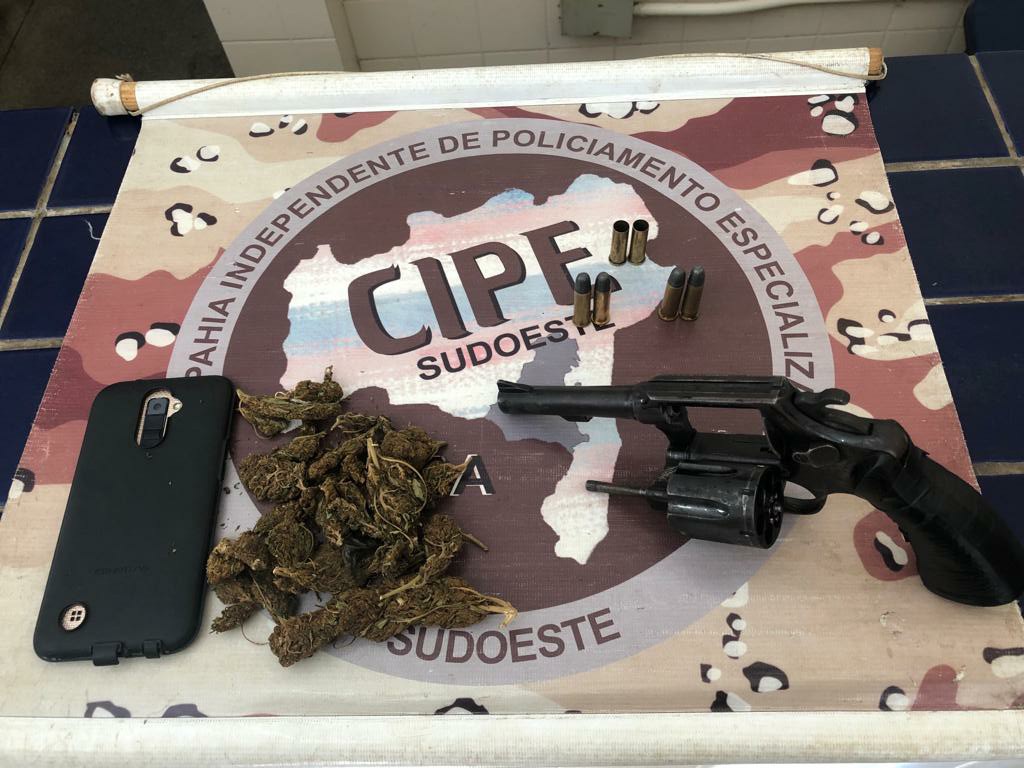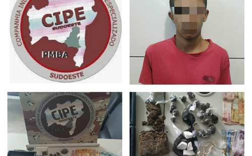 Uma guarnição da Cipe Sudoeste, antiga Caesg, prendeu neste sábado à tarde em Vitória da Conquista um suspeito e tráfico...