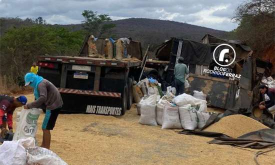 Uma carreta que fazia o transporte de uma grande carga de soja tombou na manhã desta quinta-feira (17), na BR-030,...