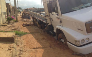 Há 9 anosConquista: Buraco 'engole' caminhão no Morada Real; trator também atolou